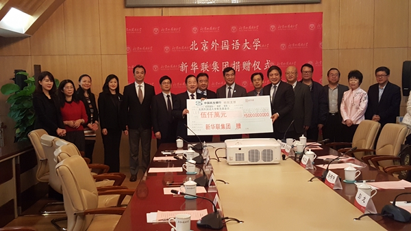 2016年12月20日上午,新華聯(lián)集團在北京外國語大學(xué)行政樓舉行捐贈簽約儀式,向北京外國語大學(xué)捐贈5000萬元,用于支持該校的發(fā)展建設(shè)。