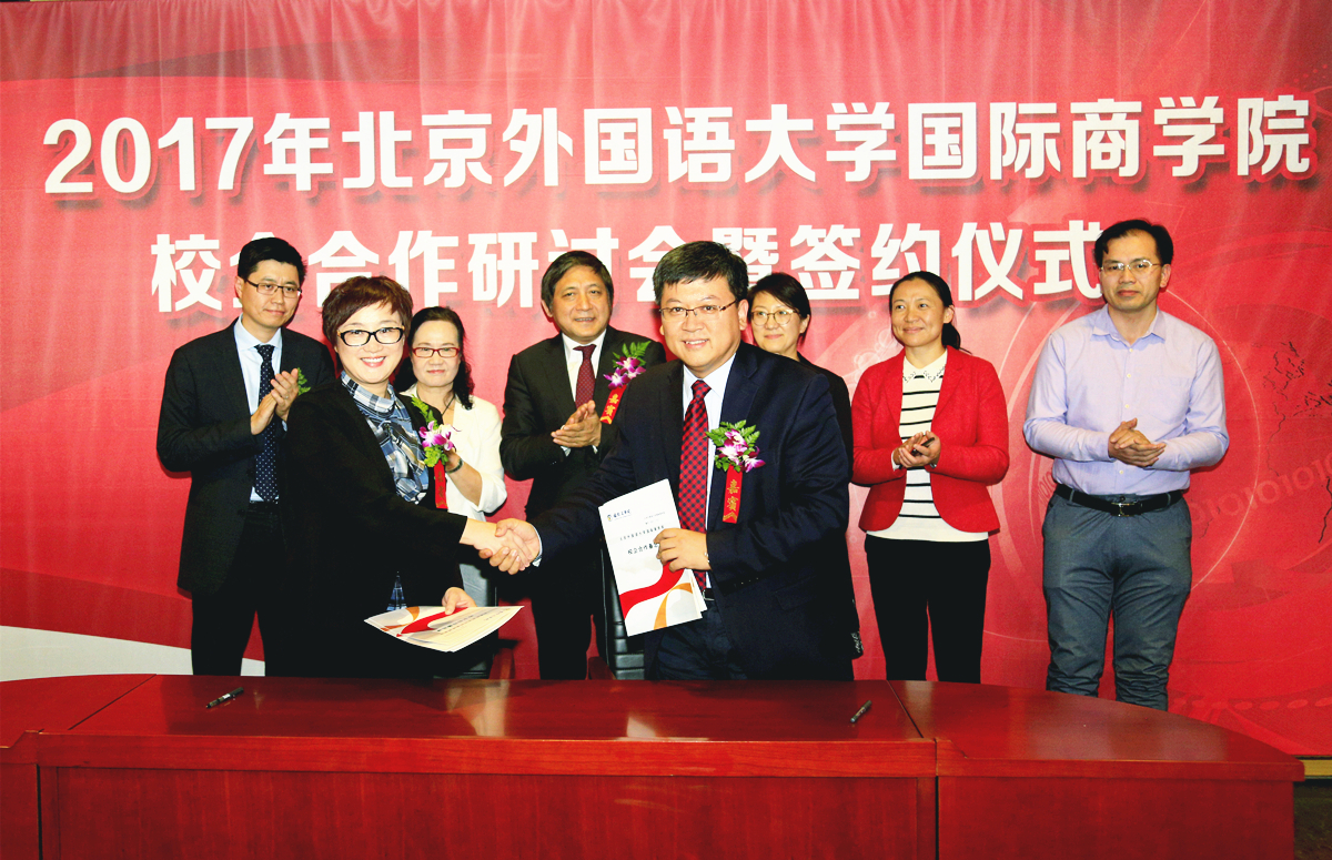 11月23日下午,新華聯集團與北京外國語大學國際商學院簽署戰略合作協議。集團黨委副書記、高級副總裁兼人力資源部總監肖文慧和北京外國語大學校長彭龍出席簽約儀式并分別致辭。