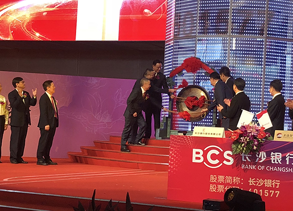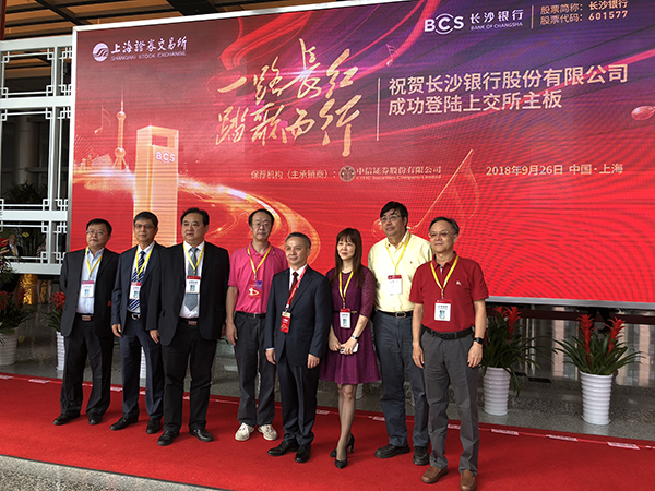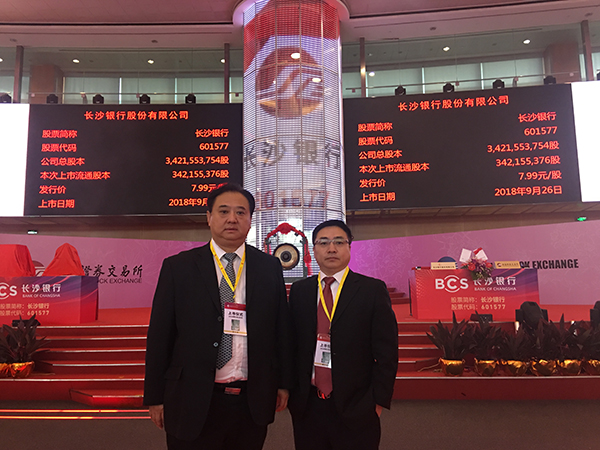 湖南省政府領(lǐng)導、長沙市政府領(lǐng)導、長沙銀行董事長朱玉國、長沙銀行行長趙小中等董事、監(jiān)事、高級管理人員,相關(guān)股東代表、客戶代表、員工代表、中介機構(gòu)代表及媒體朋友共同出席了上市儀式,見證了這一歷史時刻。