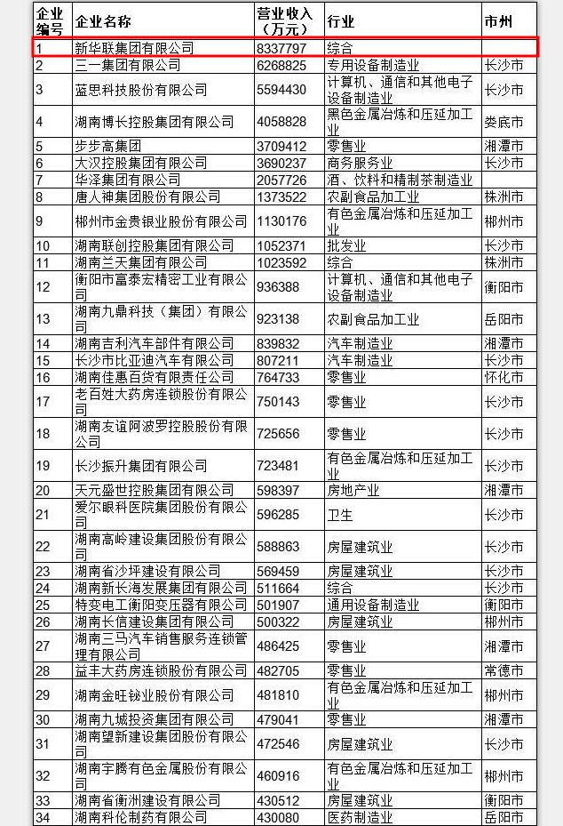 9月28日下午,2018湖南省民營(yíng)企業(yè)100強(qiáng)名單在長(zhǎng)沙發(fā)布。新華聯(lián)集團(tuán)以833.78億元的營(yíng)業(yè)收入蟬聯(lián)榜首。