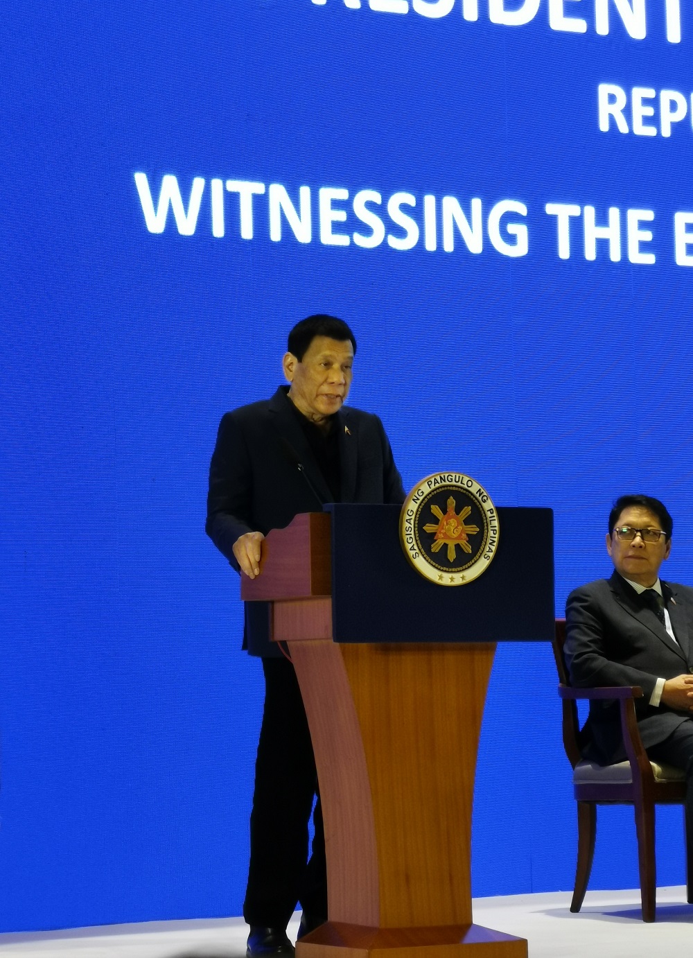 菲律賓總統(tǒng)杜特爾特接見(jiàn)了傅軍總裁一行,并代表菲律賓政府致辭。他高度評(píng)價(jià)了中國(guó)“一帶一路”倡議,對(duì)中國(guó)企業(yè)為菲律賓經(jīng)濟(jì)社會(huì)發(fā)展所做出的貢獻(xiàn)表示感謝,對(duì)協(xié)議的簽署表示熱烈祝賀。
