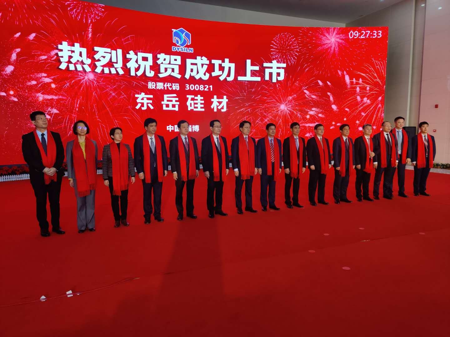 3月12日9:00,山東東岳有機硅材料股份有限公司(東岳硅材)在疫情特殊時期,通過視頻直播連線深圳證券交易所,在東岳集團智控中心舉行上市儀式。淄博市委書記江敦濤,市長于海田,市委常委、秘書長畢司東,淄博市副市長宋振波,桓臺縣委書記賈剛,縣長邊江風(fēng),東岳集團董事長張建宏,東岳硅材董事長王維東等出席本次儀式。這標志著東岳硅材成功登陸深圳證券交易所創(chuàng)業(yè)板,正式實現(xiàn)掛牌交易。東岳硅材(股票代碼:300821)本次發(fā)行股份總數(shù)量為3.00億股,發(fā)行價為每股6.9元,募集資金總額20.7億元,用于30萬噸/年有機硅單體及20萬噸/年有機硅下游產(chǎn)品深加工項目。開盤后,東岳硅材大漲44.06%,每股報9.94元。