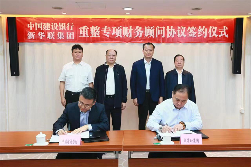 6月13日上午,中國(guó)建設(shè)銀行與新華聯(lián)集團(tuán)在全國(guó)工商聯(lián)機(jī)關(guān)大樓簽訂重整專項(xiàng)財(cái)務(wù)顧問(wèn)協(xié)議。全國(guó)工商聯(lián)副主席黃榮,中國(guó)建設(shè)銀行黨委副書(shū)記、監(jiān)事長(zhǎng)王永慶,黨委委員、副行長(zhǎng)王浩,新華聯(lián)集團(tuán)董事局主席兼總裁傅軍出席簽約儀式,簽約儀式由全國(guó)工商聯(lián)副秘書(shū)長(zhǎng)、經(jīng)濟(jì)服務(wù)部部長(zhǎng)林澤炎主持。建設(shè)銀行北京分行行長(zhǎng)林朝暉、新華聯(lián)集團(tuán)高級(jí)副總裁馮建軍分別代表雙方簽署協(xié)議。