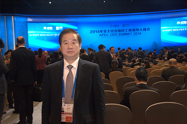 11月8日至10日,2014年APEC工商領導人峰會在北京舉辦,來自12個國際組織、38個經濟體的1500名代表共聚一堂。全國政協委員、中國民間商會副會長、集團董事局主席兼總裁傅軍參加會議。