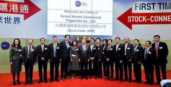 據悉,萬達商業地產于2014年12月23日在香港聯交所主板掛牌交易,其股票代號為03699。本次全球發售H股6億股,定價48港元/股,募資規模達288億港元,成為港股2014年最大規模的IPO。新華聯集團副總裁兼首席會計師張必書代表傅軍總裁在香港出席萬達上市敲鐘儀式及慶祝午宴。