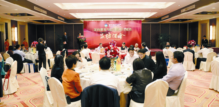 4月28日晚,新華聯不動產定向增發和公司債發行成功慶功酒會在北京麗景灣國際酒店隆重舉行。新華聯集團董事局主席兼總裁傅軍、西南證券董事長崔堅、中融鼎新投資管理公司總裁白峰以及投資方代表、中介方代表、新華聯集團高層領導、新華聯不動產經營管理團隊共60人應邀出席酒會。會議由新華聯不動產董事長丁偉主持。傅軍總裁發表了講話。他強調,新華聯不動產正在加速轉型升級:一是在文化旅游地產方面重點發力,培育公司核心競爭優勢;二是響應國家“一帶一路”戰略,加速公司國際化進程;三是實行“地產+金融”發展戰略,雙輪驅動公司邁上新高度,為社會、股東和員工創造更大價值。他希望投資方、中介方一如既往地支持與信任新華聯不動產,共謀大業,共創輝煌。