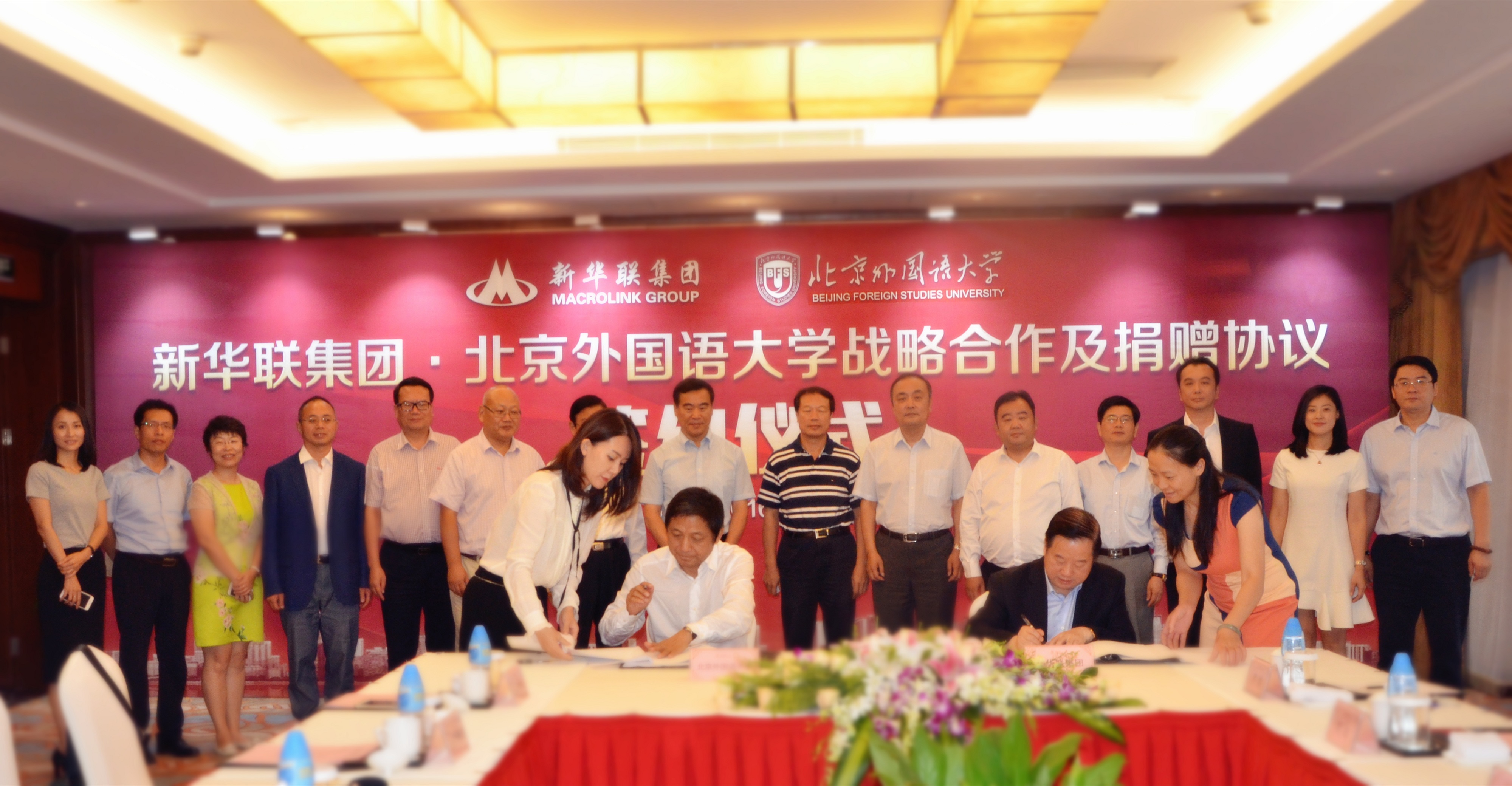 8月31日,新華聯集團與北京外國語大學戰略合作簽約儀式在北京麗景灣國際酒店舉行。新華聯集團董事局主席兼總裁傅軍,北京外國語大學校長彭龍,北京外國語大學黨委副書記趙旻,北京外國語大學副校長閆國華,北京外國語大學教育基金會理事長楊學義,北京外國語大學校長助理、綜合改革辦公室主任楊建國,北京外國語大學校長助理、北外附校校長林衛民,新華聯集團黨委書記、副總裁兼新華聯文化旅游發展股份有限公司董事長丁偉,新華聯集團副總裁兼新華聯文化旅游發展股份有限公司董事總經理蘇波,新華聯集團助理總裁楊運輝,新華聯文化旅游發展股份有限公司副總經理杭冠宇、劉巖、劉華明,教育事業部總監羅靖等出席簽約儀式。新華聯集團董事局主席兼總裁傅軍,北京外國語大學校長彭龍分別致辭,并代表雙方簽署戰略合作框架協議。根據協議,雙方將本著“優勢互補、互利互贏、共同發展”的原則,在長沙、西寧等地開展聯合辦學,積極發展基礎教育,打造國際化的教育平臺。